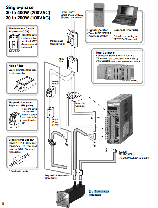 Подключите SGDH SERVOPACK к хост-контроллеру YASKAWA или к другим производителям. MP920 (имеется аналоговый вход, вход импульсной последовательности).